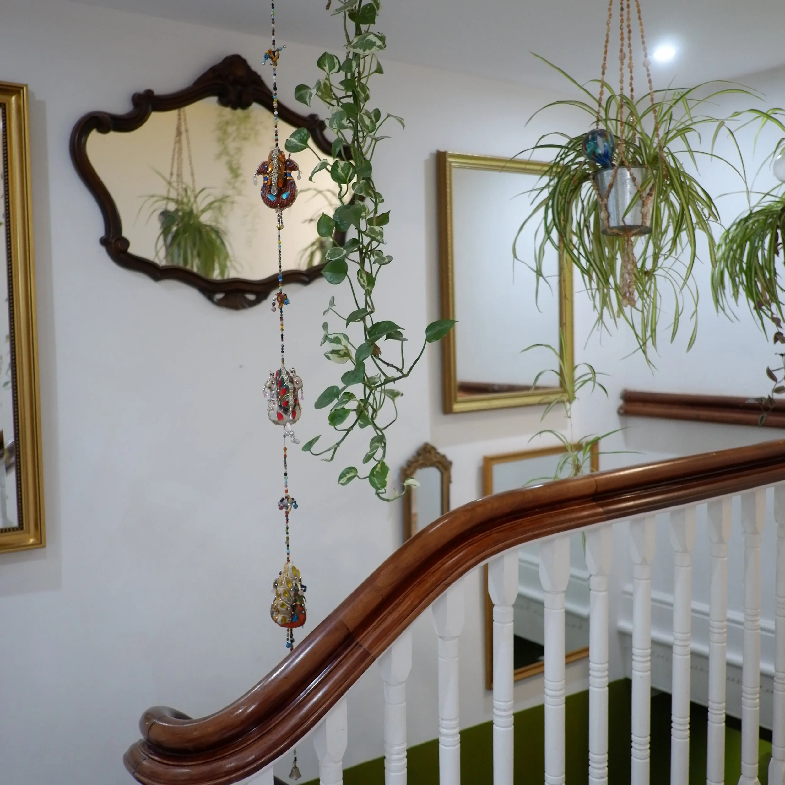 This light filled space has the benefit of double height ceilings so we played with that using plants and drawing the eye into the darker areas by bouncing light off with mirrors.